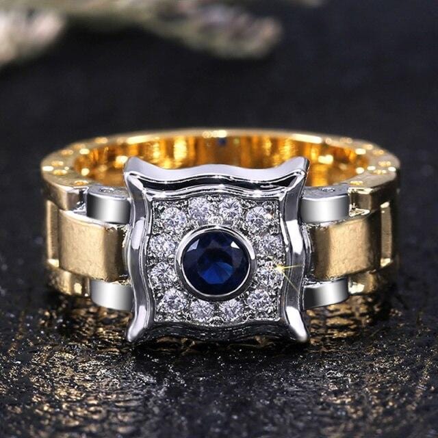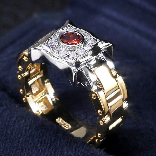 Huitan Fashion Watch-shaped Women Wedding Rings Two Tone Design Brilliant Cubic Zirconia Unique Female Rings Engagement Jewelry