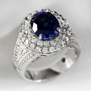 Huitan Gorgeous Blue Cubic Zirconia Wedding Ring for Women Temperament Elegant Bridal Marriage Party Ring Fashion Luxury Jewelry
