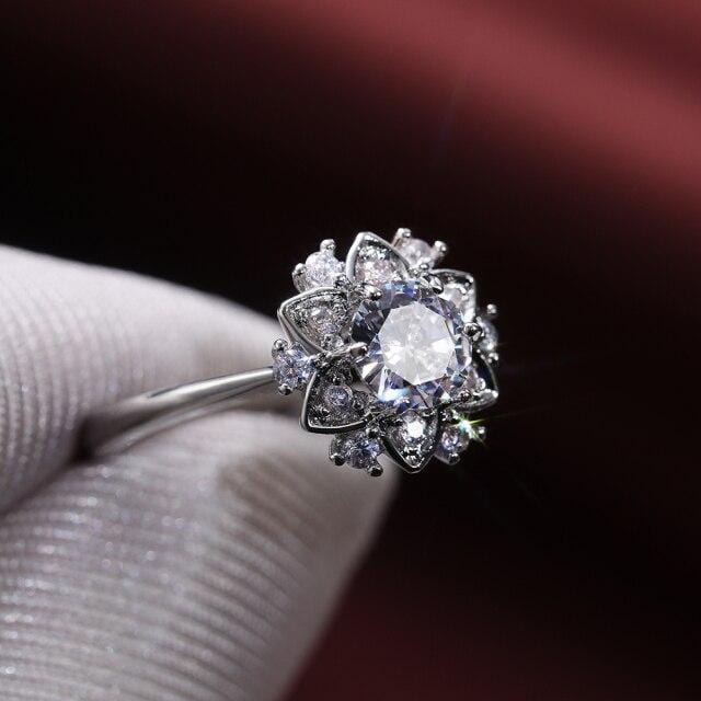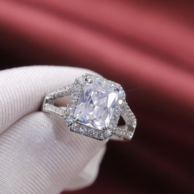 Huitan High-quality Silver Plated Women Wedding Engagement Rings with Brilliant Cubic Zirconia Crystal Bridal Eternity Jewelry