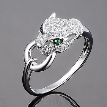 Huitan Leopard Head Inlaid Women Rings Hip Hop Animal Group Party Punk Finger Ring Jewelry Personality Fashion Gift New Style