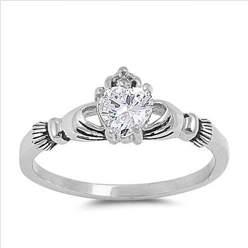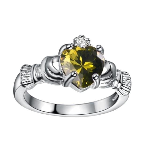 Huitan Love Heart Ring with Birthstone Silver Plated Irish Claddagh Wedding Engagement Rings for Women Best Christmas Lover Gift