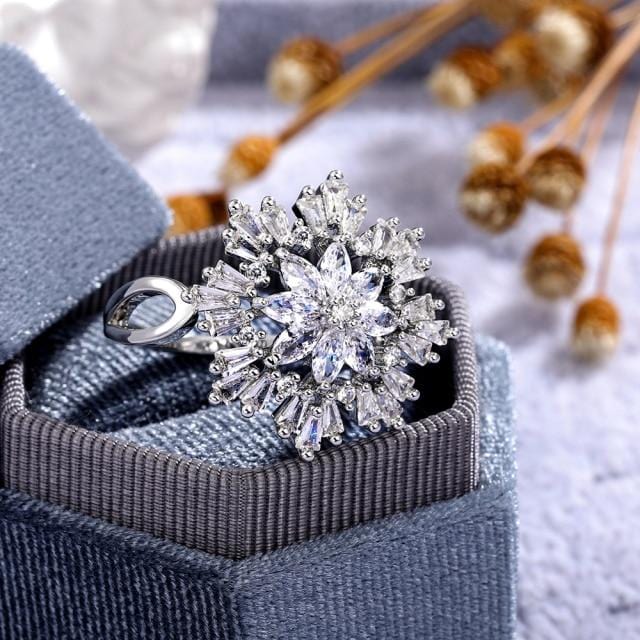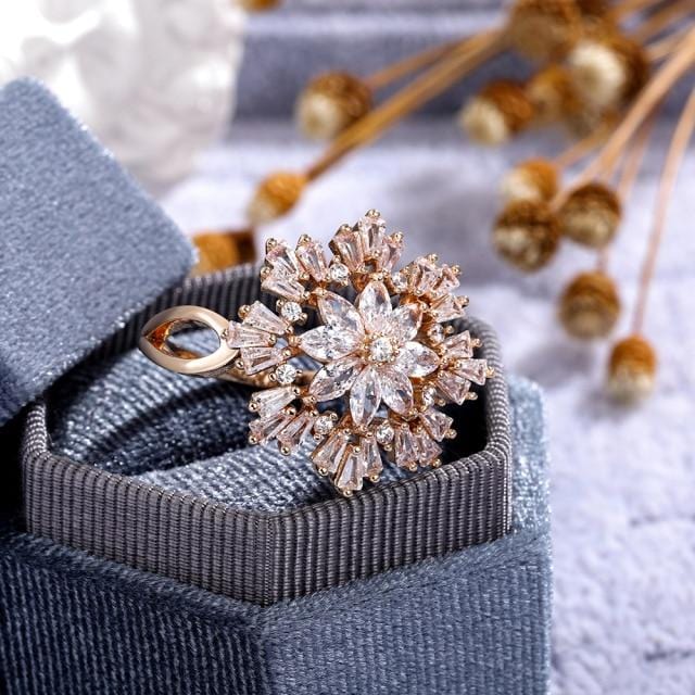 Huitan Novel Design Flower Opening Rings For Women 3 Colors Inlay Dazzling Cubic Zirconia Brilliant Female Wedding Bands Jewelry