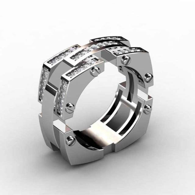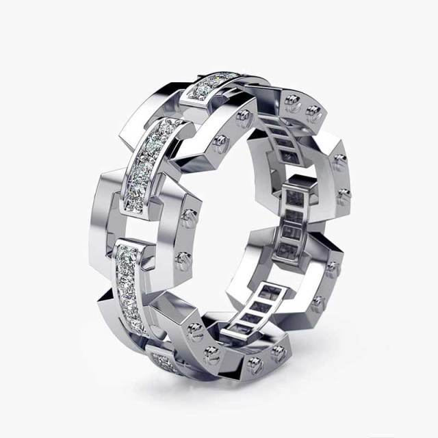 Huitan Punk Hiphop Series Mens Ring Band Cothic Geometry Men Ring Stone Trendy Gifts Gadget Ring For Gentleman