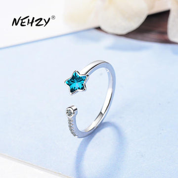 NEHZY 925 sterling silver new woman fashion jewelry high quality blue crystal zircon starfish ring opening size adjustable ring
