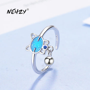 NEHZY 925 Sterling Silver New Woman Fashion Jewelry High Quality Blue Kitten Bell Crystal Zircon Ring Size Adjustable Ring
