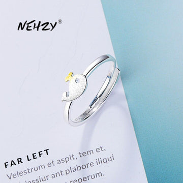 NEHZY 925 Sterling Silver New Woman Fashion Jewelry High Quality Brushed Little Whale Simple Dolphin Ring Size Adjustable Ring