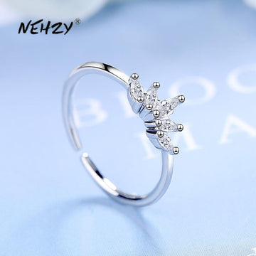NEHZY 925 Sterling Silver New Woman Fashion Jewelry High Quality Crystal Zircon Crown Open Ring Adjustable Size Ring