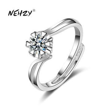 NEHZY 925 Sterling Silver New Woman Fashion Jewelry High Quality Crystal Zircon Flower Open Ring Size Adjustable Ring