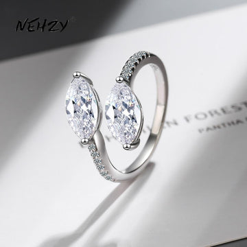NEHZY 925 Sterling Silver New Woman Fashion Jewelry High Quality Crystal Zircon Simple Heart-shaped Opening Size Adjustable Ring