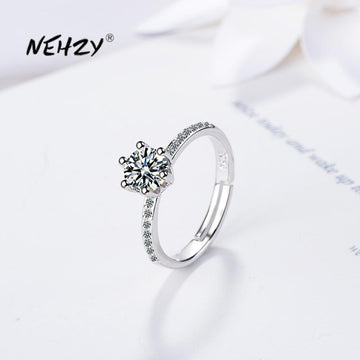 NEHZY 925 Sterling Silver New Woman Fashion Jewelry High Quality Crystal Zircon Six Prong Ring Adjustable Size Open Ring
