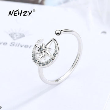 NEHZY 925 Sterling Silver New Woman Fashion Jewelry High Quality Crystal Zircon Star Moon Open Ring Size Adjustable Ring