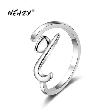 NEHZY 925 Sterling Silver New Woman Fashion Jewelry High Quality Cute Kitty Simple Open Ring Size Adjustable Ring