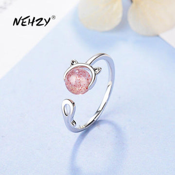 NEHZY 925 Sterling Silver New Woman Fashion Jewelry High Quality Pink Agate Kitten Simple Ring Size Adjustable Ring