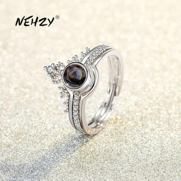 NEHZY 925 Sterling Silver New Woman Fashion Jewelry High Quality Simple Crystal Zircon Crown Opening Adjustable Couple Ring
