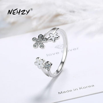NEHZY 925 Sterling Silver New Woman Fashion Jewelry High Quality Simple Crystal Zircon Flower Open Ring Adjustable Size Ring