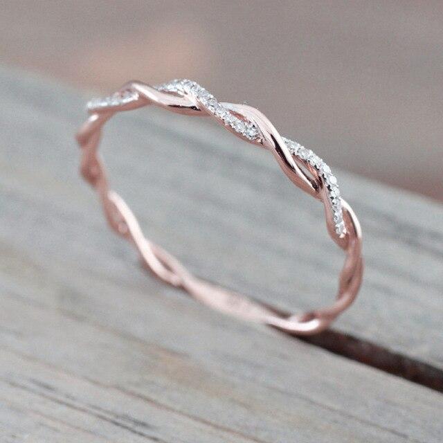 Thin String Twist Ring Rose Gold Color Mini Finger Ring Micro Crystal Full Pave Setting Nobility Cute Jewelry