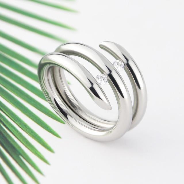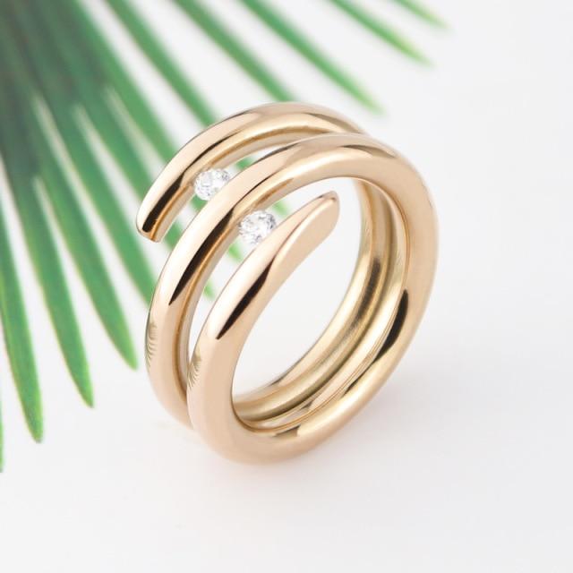 Unique Design Titanium Steel Three Circle Clamp Two Zircon Ring For Women Beautiful Brand Jewelry Couple Gift Ring Wholesale