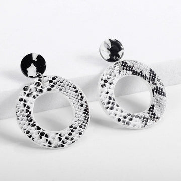 2019 Trendy Snake Print Dangle Drop Earrings For Women geometry Big Round White Hanging Earring Statement Leather