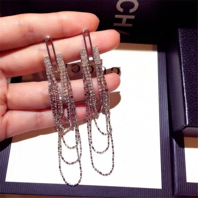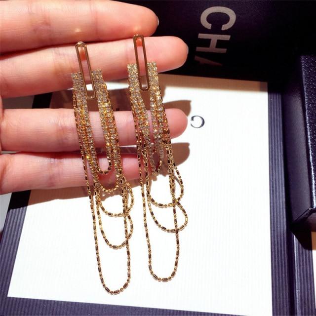 2020 New Long Crystal Tassel Gold Color Dangle Earrings for Women Wedding Drop Earing Fashion Jewelry Gifts