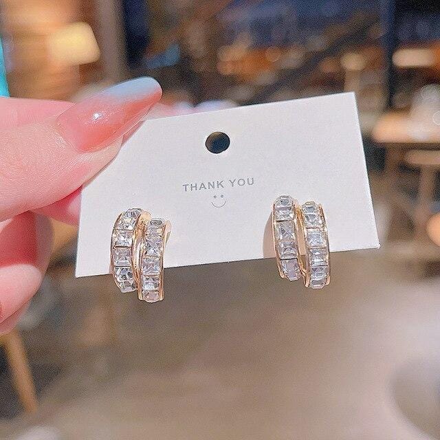 2021 Real Gold Temperament Round CZ earring for Women One Row Zircon Stud earring Wedding Jewelry Brincos