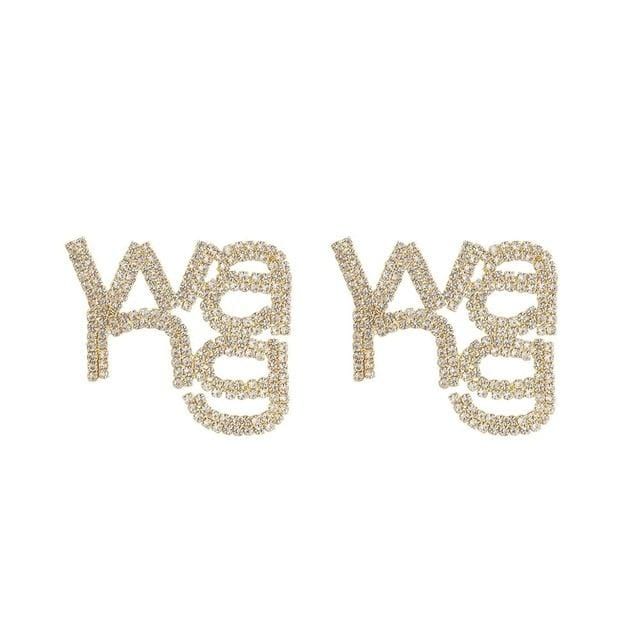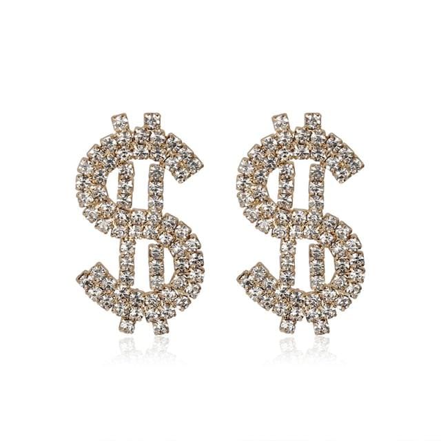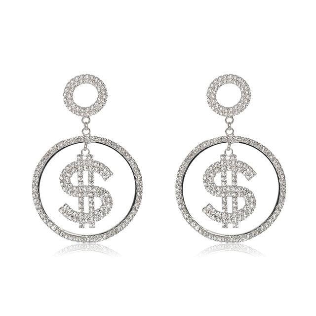 AENSOA Personality Super Shiny Rhinestone Dollar Pendant Drop Earrings for Women Charm Statement Earrings Fashion Jewelry Gift