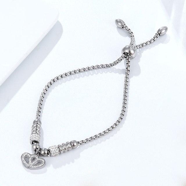 Beautiful Full Crystal Overlapping Two Heart Bracelet Stainless Steel Adjustable Size Bracelet For Women Love Christmas Gifts