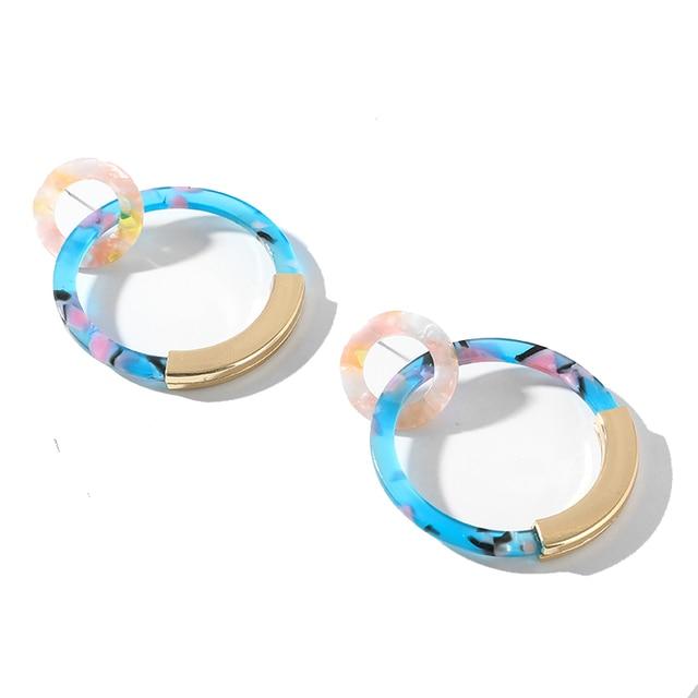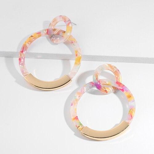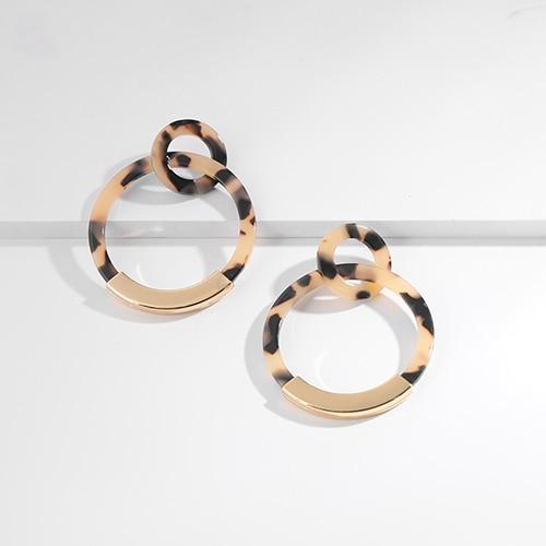 Fashion Colorful Leopard Acrylic Dangle Earring for Women Gold Alloy Round Geometry Resin Statement Hanging Earring