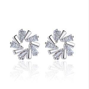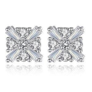 Fashion female love window magic square silver color earrings super shine geometric flowers crystal earrings jewelry