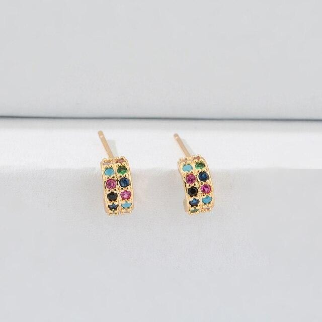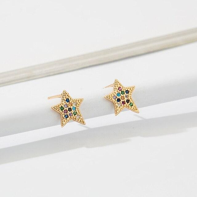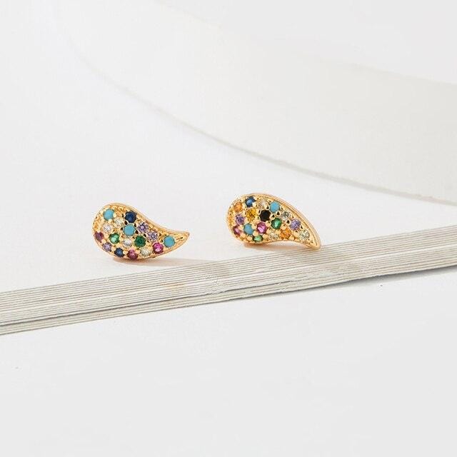 Gold Small CZ Stud Earrings for Women Trendy Charm Rainbow Cubic Zirconia Waterdrop Star Korean Earrings Wedding Jewelry