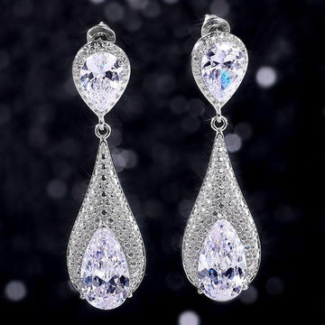 Huitan 2021 New Trend Women Earring AAA Water Drop Cubic Zirconia Crystal Aesthetic Bridal Wedding Dangle Earrings Jewelry Gifts