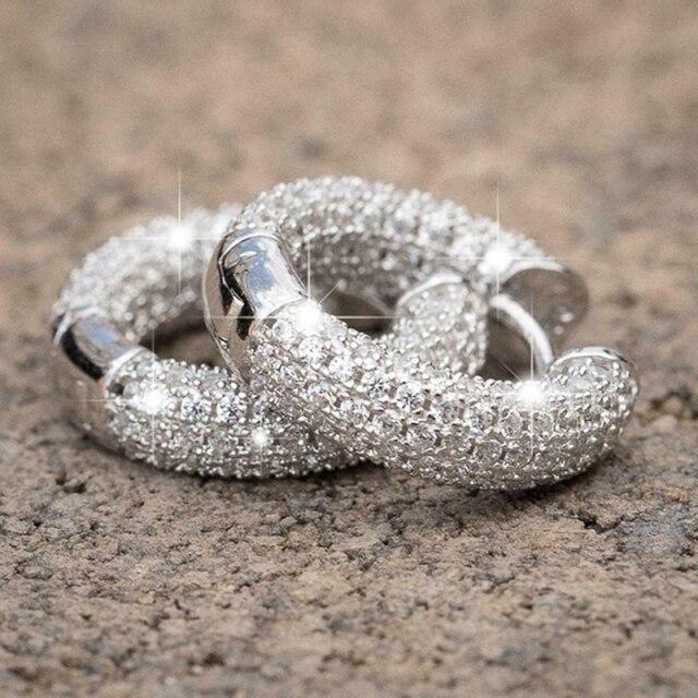 Huitan Delicate Hoop Earrings Shiny Cubic Zircon 3 Color Available Simple Stylish Daily Wearable Bridal Earrings Wedding Jewelry