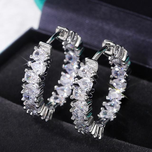 Huitan Luxury CZ Hoop Earrings Women Wedding Engagement Accessories Water Drop Shape AAA Cubic Zirconia Female Statement Jewelry