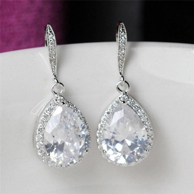 Huitan Luxury Dangle Earrings for Women Pear Shape Cubic Zirconia Elegant Female Accessories High Quality Trendy Wedding Jewelry