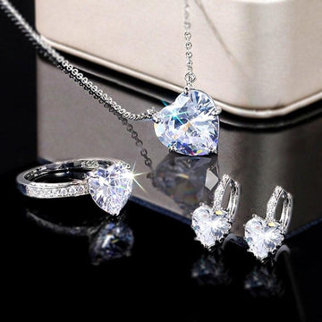 Huitan Luxury Heart CZ Women Wedding Sets Ring/Earring/Necklace High-quality Silver Color Love Jewelry Eternity Accessories Bulk