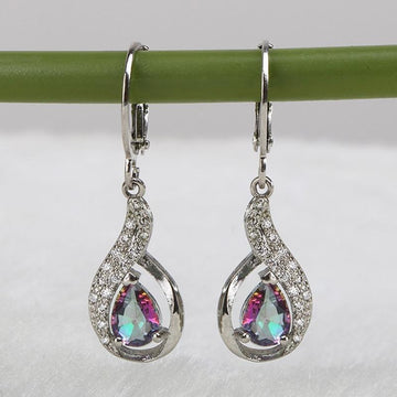 Huitan Water Drop Shape Women Drop Earring Elegant Lady Wedding Accessories with Pear Multi Color CZ Stone New Trendy Jewelry