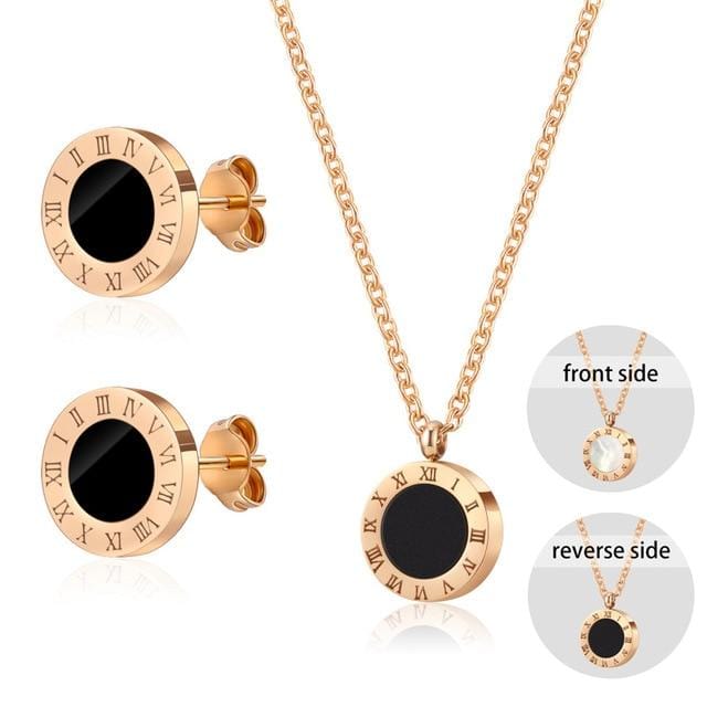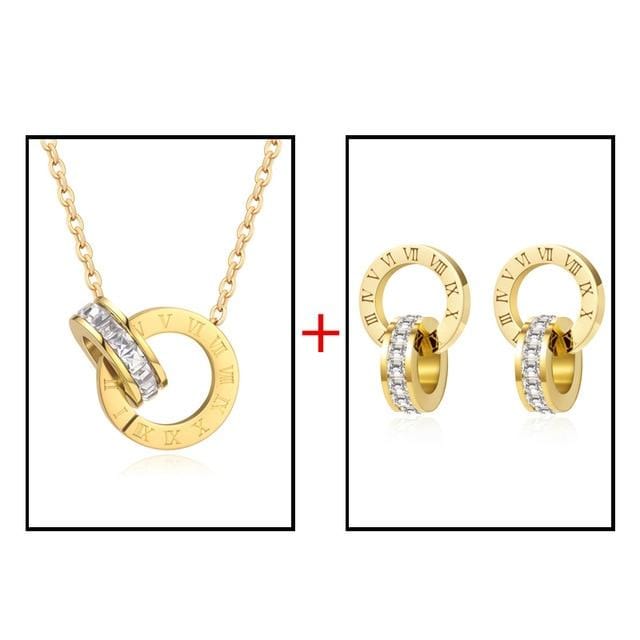 Luxury Elegant Roman Numeral Crystal Necklace Earrings Set For Women Fashion Stainless Steel Earrings 2020 Trend Wedding Jewelry