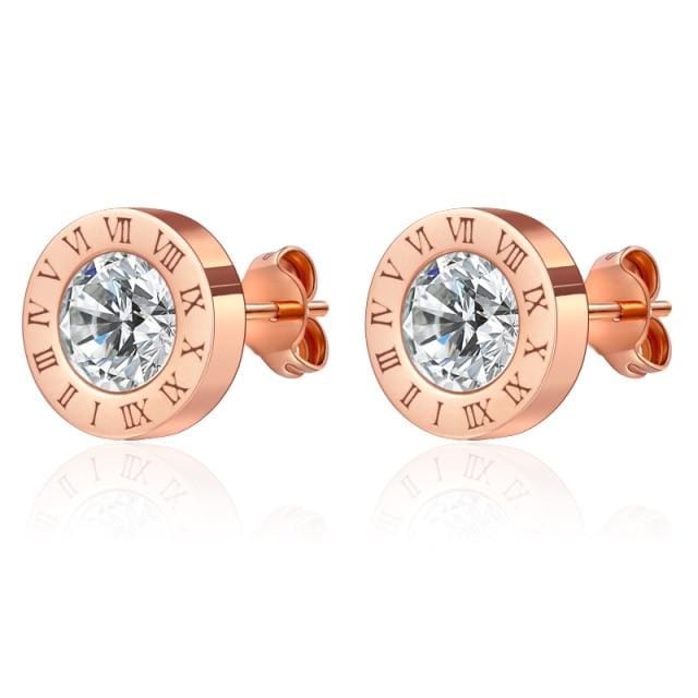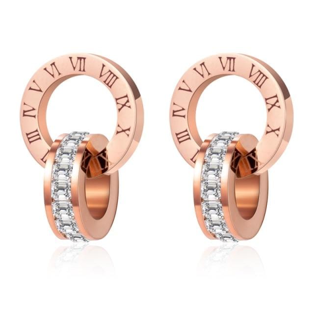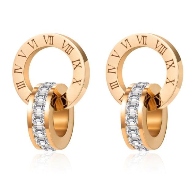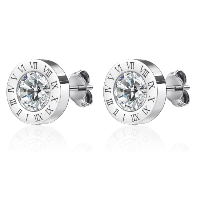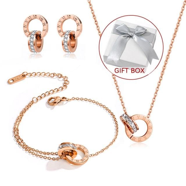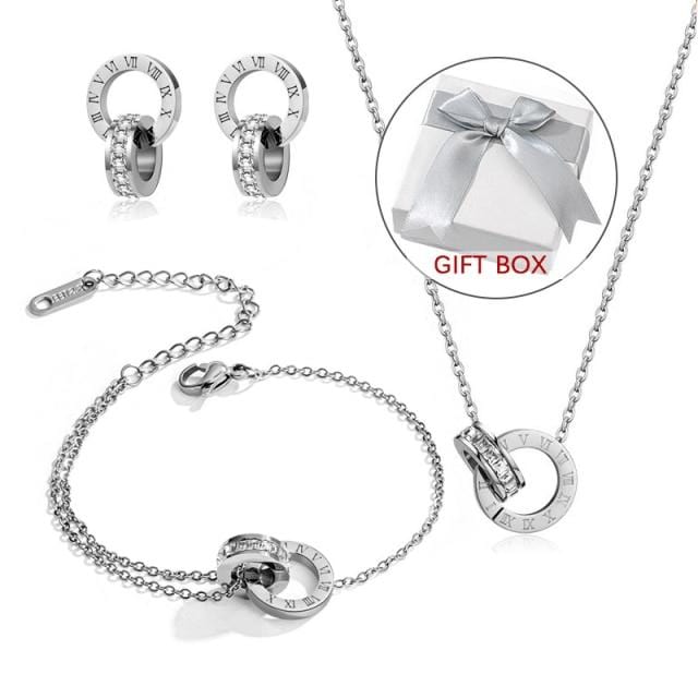 Luxury Elegant Roman Numeral Crystal Necklace Earrings Set For Women Fashion Stainless Steel Earrings 2021 Trend Wedding Jewelry