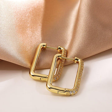 Luxury U Shape Cubic Zirconia CZ Earring for Women New Trendy Gold Color Geometric Square Hoop Earrings Party Jewelry Gifts