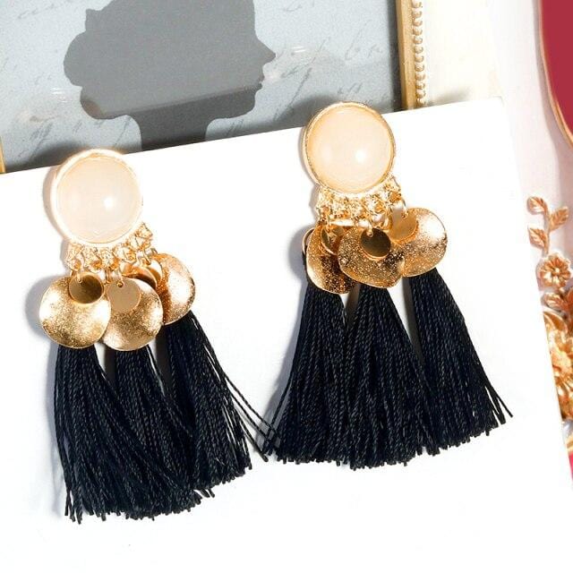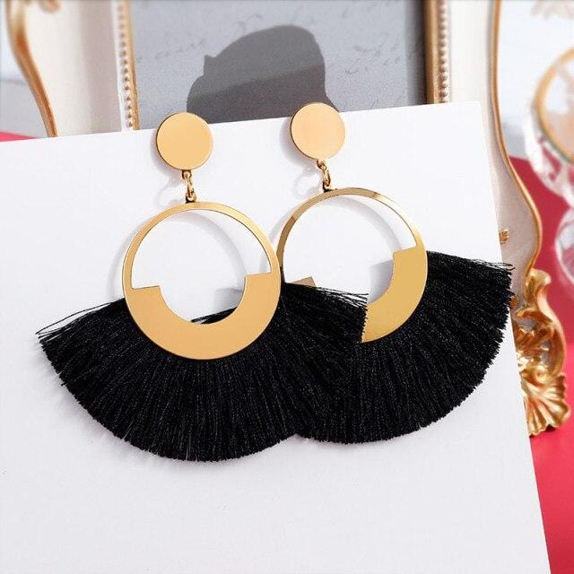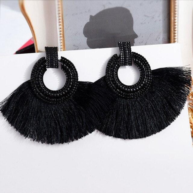 New Fashion Bohemian Big Tassel Drop Earrings 2020 For Women Cotton Silk Fabric Blakc Wedding Dangle Earrings Female Jewelry