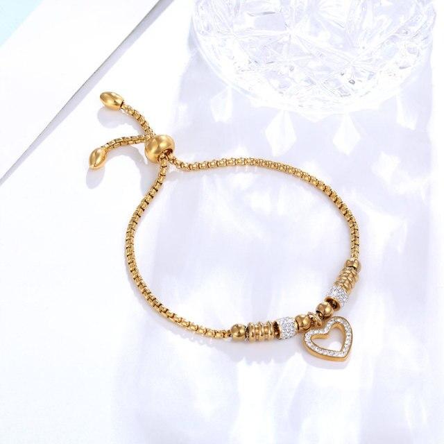 New Style Adjustable Size Heart Zircon Charm Bracelet Snake Chain Stainless Steel Women Bracelet Wedding jewelry Memorial Gift