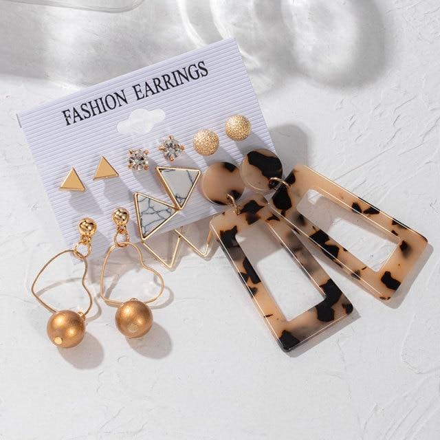 POXAM New Korean Acrylic Earrings For Women Geometric Round Gold Drop Dangle Earring Set Wedding 2020 kolczyki Fashion Jewelry