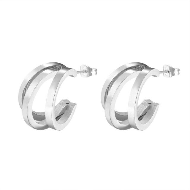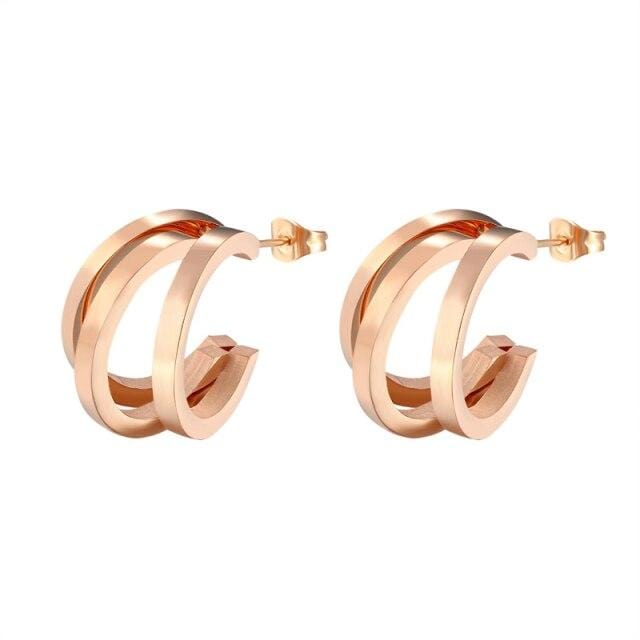 Unique Design Three Half Circle Stud Earring For Women Stainless Steel Gold Color Earring Jewelry Gift