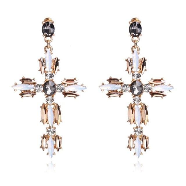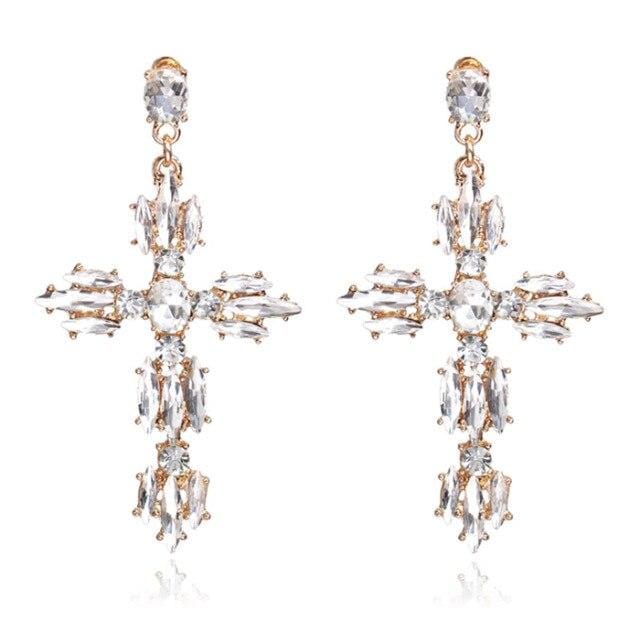 Ztech Fashion Jewelry Long Crystal Baroque Cross Earrings For Women Wedding Accessoires Luxury Statement Drop Dangle Earrings