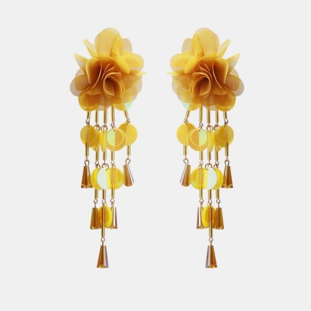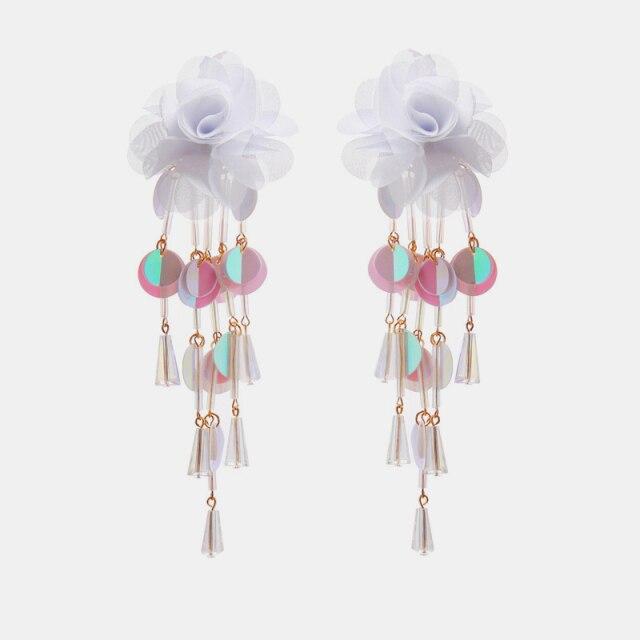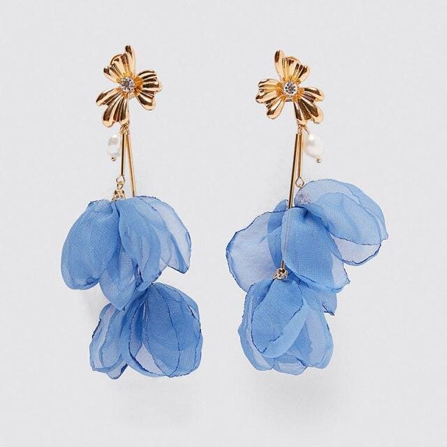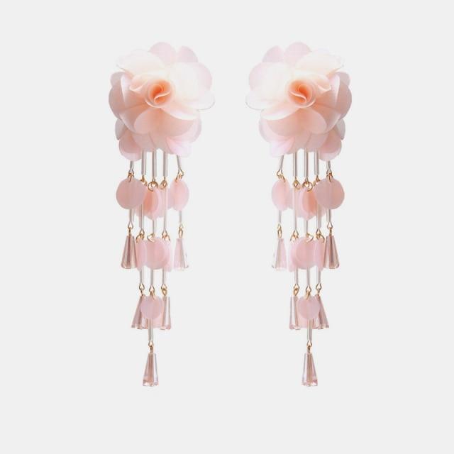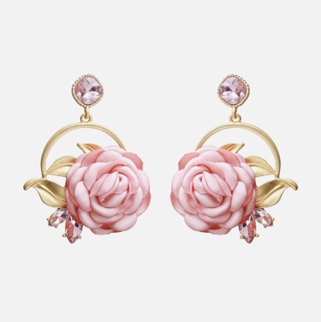 Ztech New High Quality Lace Fabric Flower Earrings For Women Big Pink Rose Flower Trendy Womans Earrings Drop Earrings Jewellry
