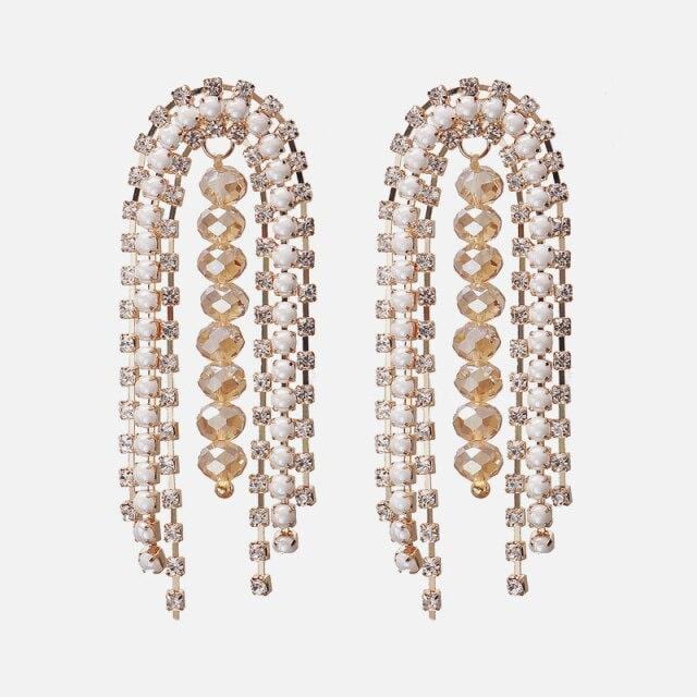 Ztech New Long 4 Colors Geometric Pendant Earrings Drop Earrings Femal Trendy Beaded Resin Acrylic Crystal Dangle Earrings