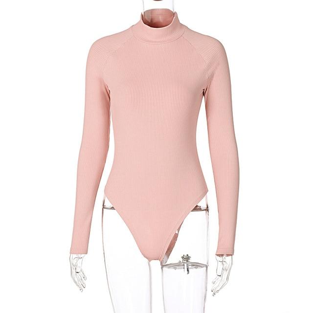 Dulzura Ribbed Knitted Stripe Women Solid Bodysuit Long Sleeve Turtleneck Bodycon Sexy Club Streetwear 2020 Autumn Winter Office