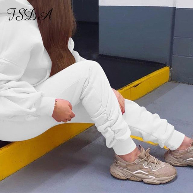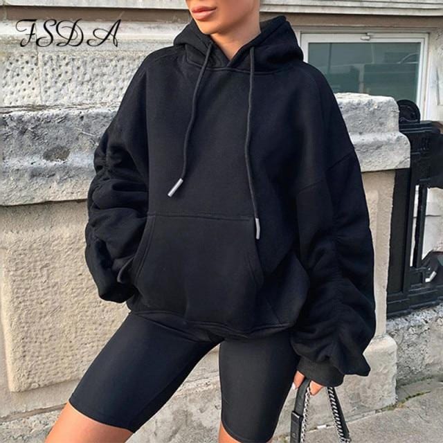 FSDA 2020 Autumn Winter White Oversized Sweatshirt Women Khaki Long Puff Sleeve Ruched Casual Loose Hooded Fahion