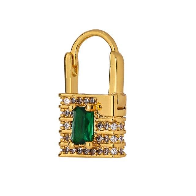 Yhpup 1 Piece Luxury Shiny Cubic Zirconia Key Lock Hoop Earrings Stylish Unique Design Creativity Copper Metal Women Earrings