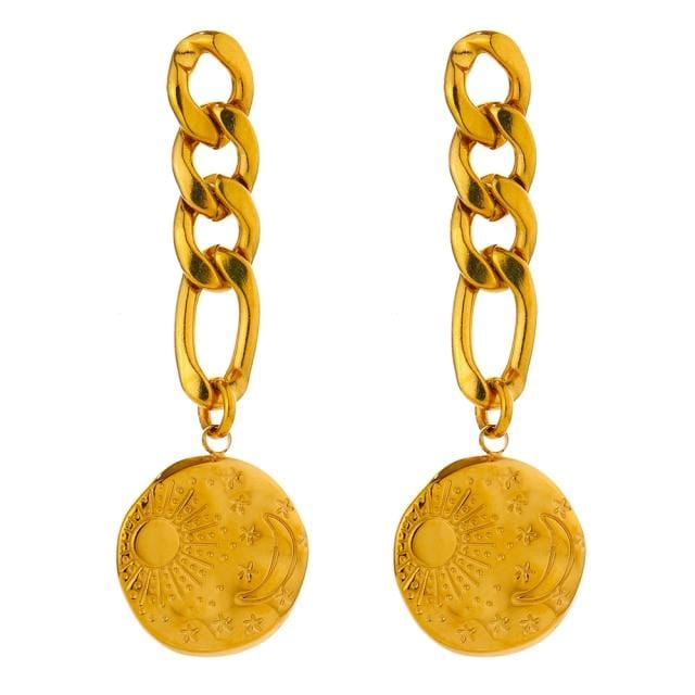 Yhpup New Stainless Steel Jewelry Minimalist Chain Punk Metal Dangle Earrings Charm Gold 18 K Texture Women Earrings Gala Gift