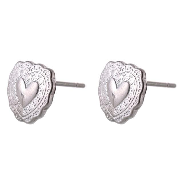 Yhpup Romantic Cute Heart Metal Stud Earrings for Women High Quality Stainless Steel 18 K Plated Fashion Earrings Jewelry 2021